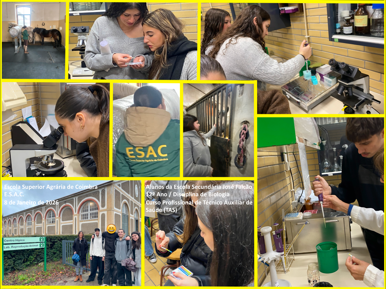 Os alunos da Escola Secundária José Falcão da disciplina de Biologia do 12º ano do Curso Profissional de Técnico Auxiliar de Saúde (TAS), acompanhados pela professora Luísa Conde, realizaram no dia 8 de Janeiro uma visita de estudo à Escola Superior Agrária de Coimbra - ESAC.